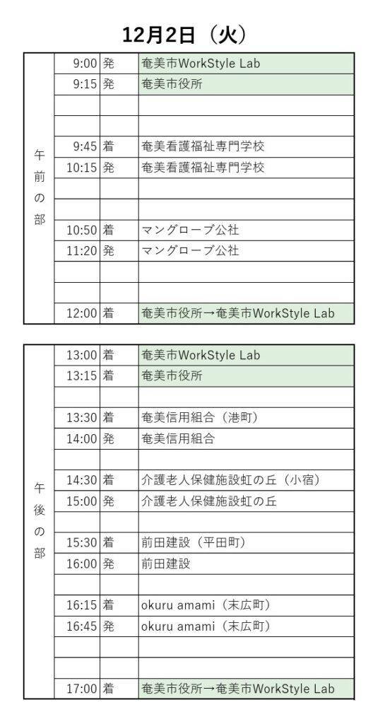 ◎奄美市WorkStyle Lab :奄美市名瀬浦上町48-1 奄美市産業支援センター2F
