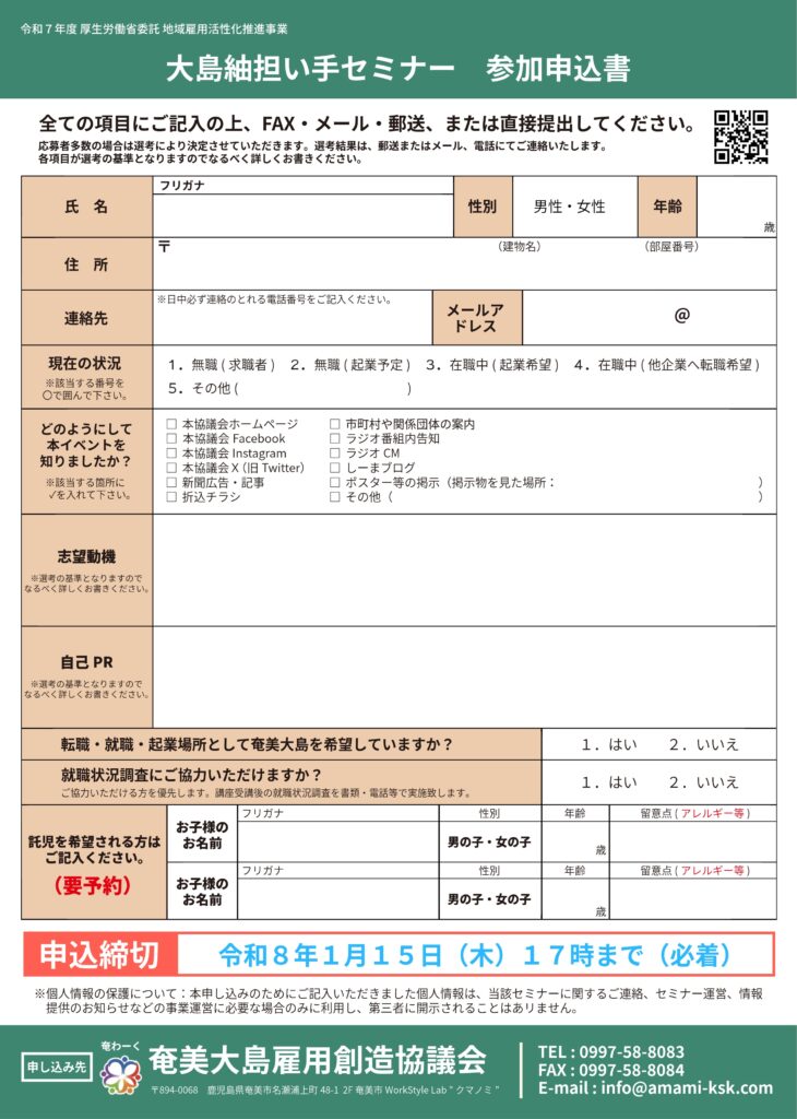 奄美市WorkStyle Lab (奄美市名瀬浦上町48-1 奄美市産業支援センター2階) - 対象者